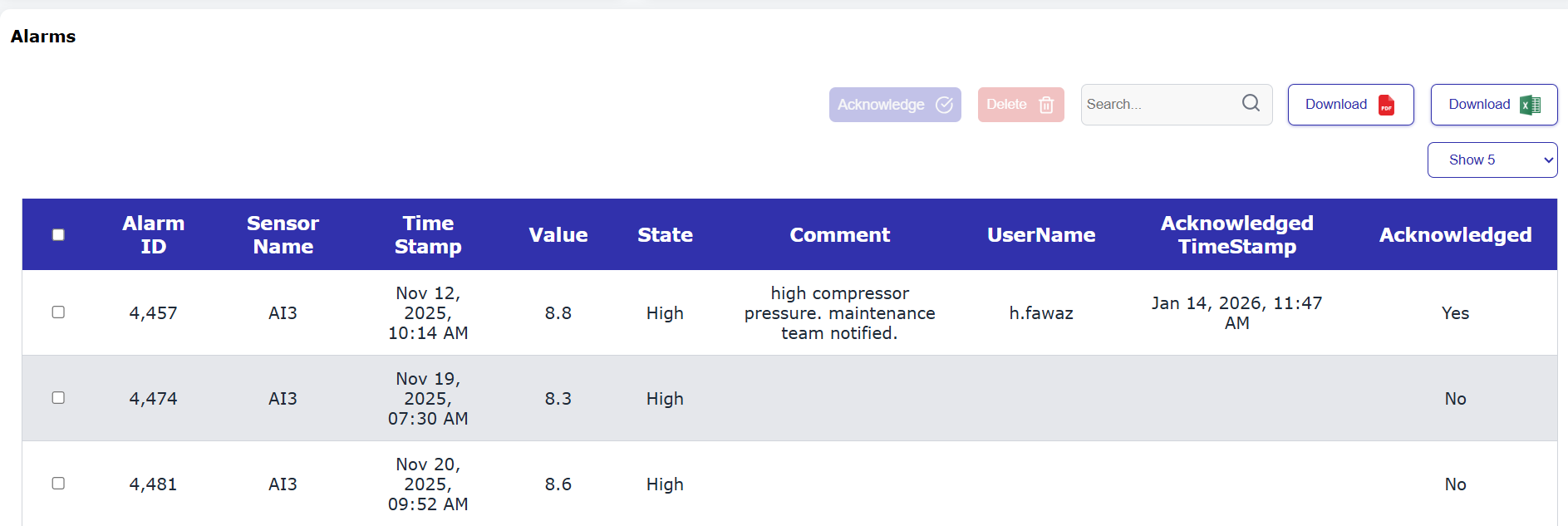 Alarms Acknowledgment |