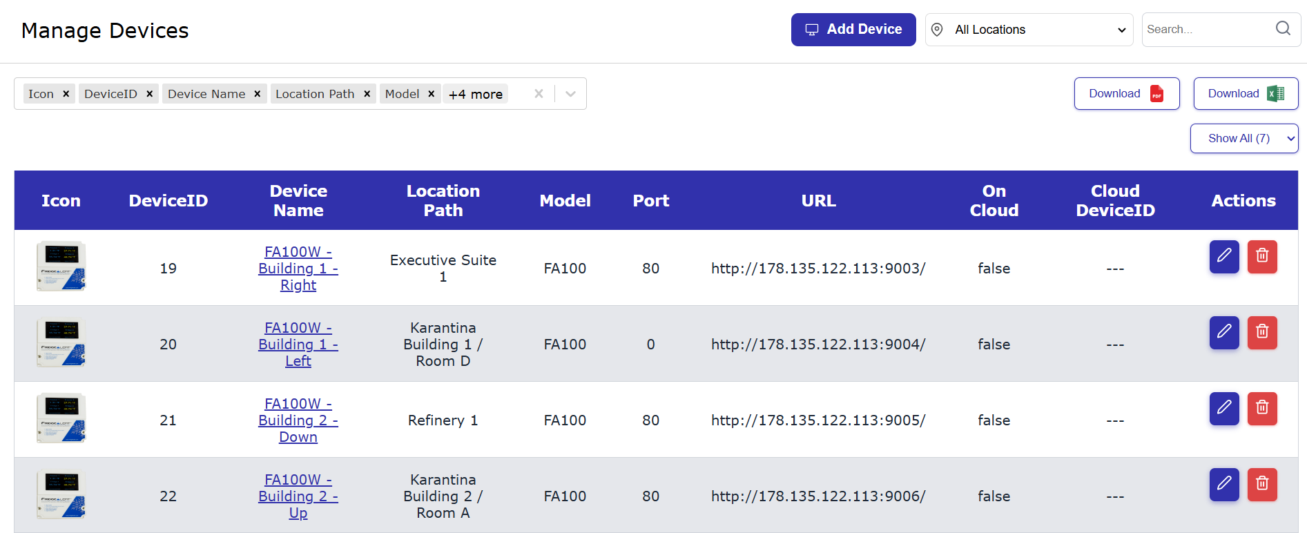 Manage Devices and Assign Them to Locations Allows admins to create, edit, and delete devices and link each one to a specific location. Ensures accurate organization and tracking of all assets. |
