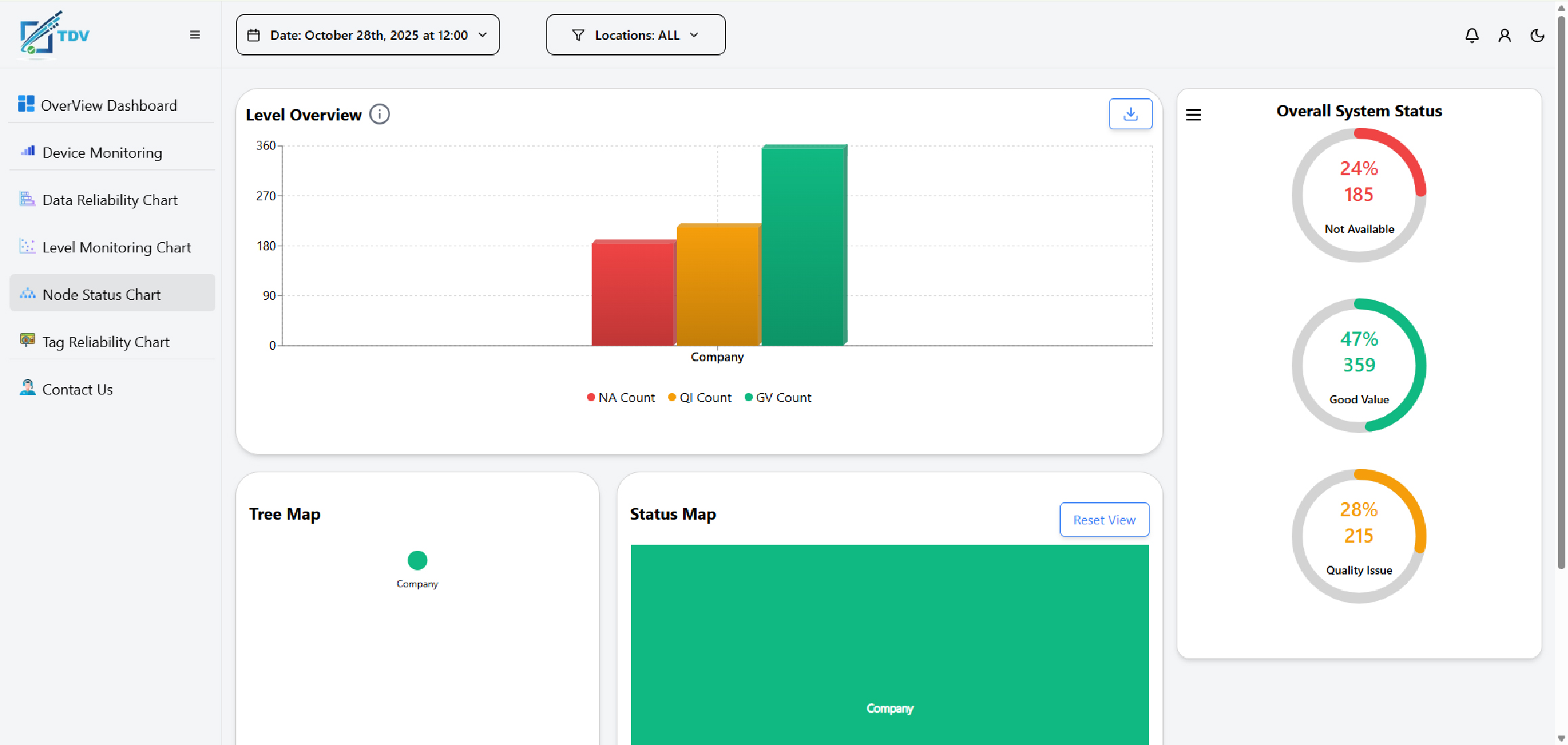 Node Status Chart Shows the status of elements, with the ability to drill down from the highest level to the tag level.  |