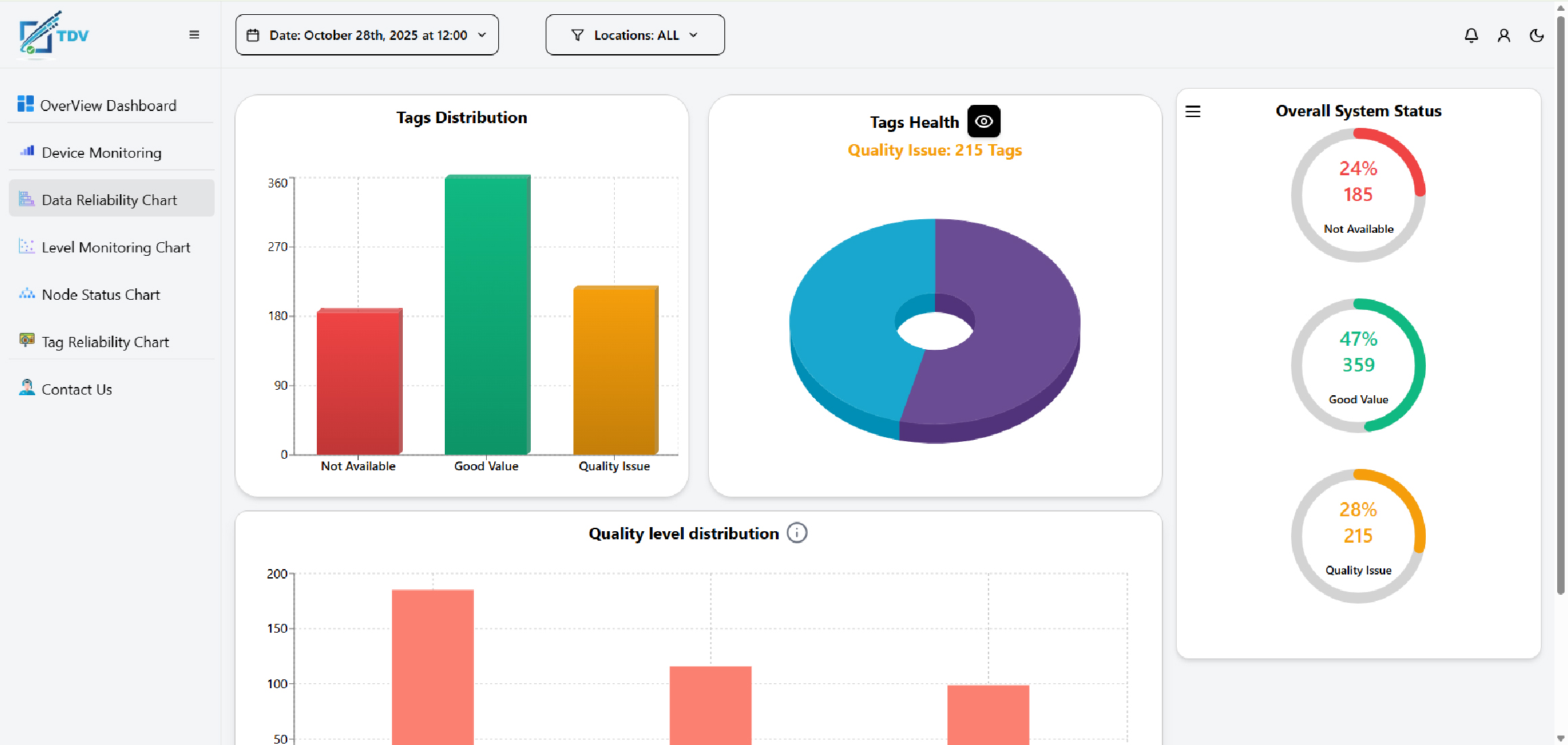 Tags Reliability Heat Map View Illustrates the reliability of data over time, aiding users in selecting optimal periods for analysis.  |