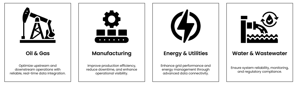| OPC Servers (Multi-Vendor Connectivity): Connect to hundreds of industrial devices including Siemens, Allen-Bradley, Schneider Electric, ABB, Honeywell, and Yokogawa using Matrikon OPC servers. | OPC UA & Legacy Integration: Bridge legacy and modern systems using OPC UA wrappers and tunnellers, enabling smooth digital transformation without replacing existing infrastructure. |